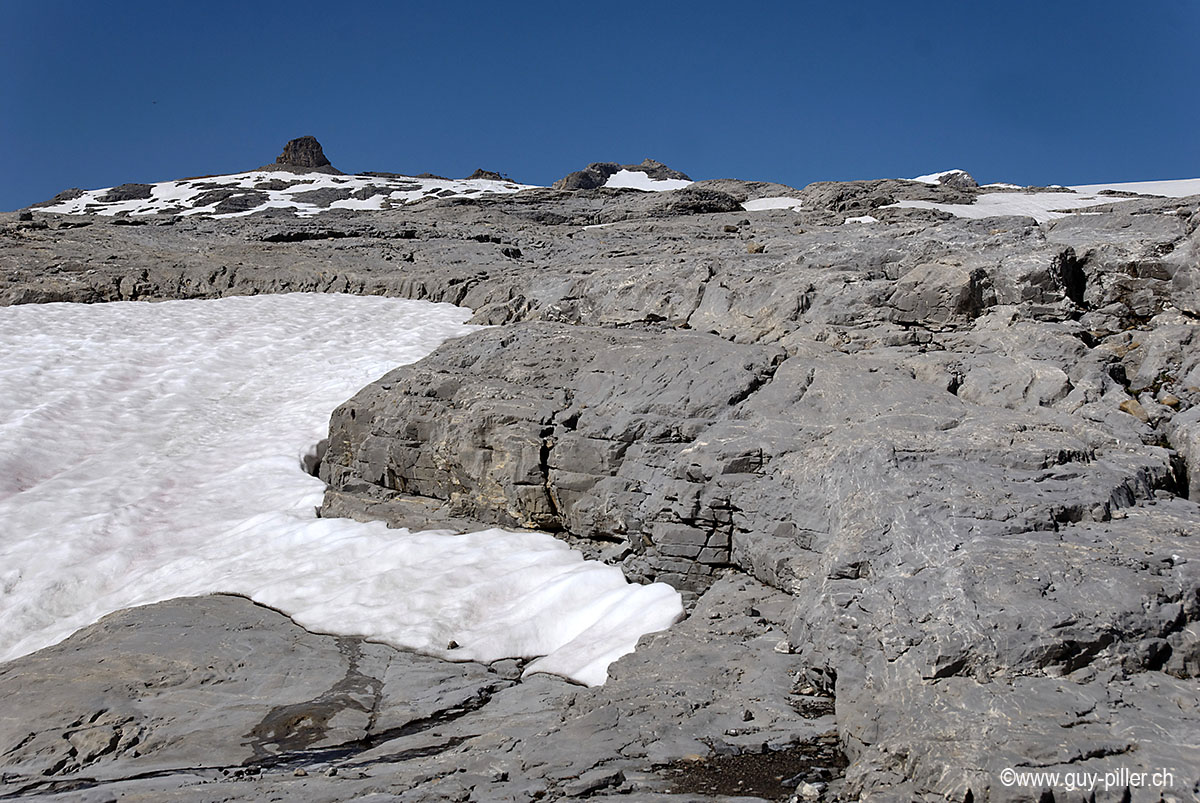 Balade agréable avec un décor lunaire lors de la traversé du Lapies de Tsanfleuron. La roche érodées par le glacier et l'eau présente de nombreuses crevasses.